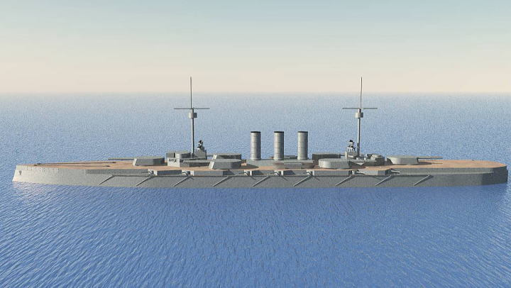 | 1911年8月ドイツ帝国海軍戦艦ナッサウの次ぐ弩級戦艦の第二段、戦艦ヘルゴラントが就役します、更に姉妹艦のオストフリーフラント、テューリンゲン、オルデンブルンクが就役、それにより前級ナッサウ級4隻と合わせてドイツ海軍は4番艦のオルデンブルンクが就役した1912年7月の時点で8隻もの弩級戦艦を保有する事となります。 |