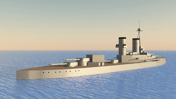| アイアンデューク竣工後、数ヶ月で第一次世界大戦が勃発しています、大戦下、当艦はグランドフリートの旗艦となり1916年5月31日にはユトランド沖海戦に参戦、イギリス艦隊の中央に位置しながら90発の主砲弾を発砲しドイツ戦艦ケーニヒに7発命中させています、此れによりケーニヒは多大な損害を被ります、更にアイアンデュークは駆逐艦S35撃沈、なかなかの戦果でした、また姉妹艦「マールバラ」も敵戦艦「グローサー・クールフェルスト」、巡洋艦「ビィースバーテン」に損害を与えています。 | ||||