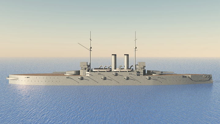 1897年戦艦朝日はイギリス、ジョン・ブラウン社で建造が開始され1900年に竣工します、当時日本海軍は1万トン以上の戦艦を一等戦艦と定めていた為に朝日はそれに分類されました。1904年2月8日からの日露戦争で朝日は日本海軍の主力艦隊である第一艦隊、の第一戦隊に所属して旅順港封鎖作戦、黄海海戦に参加、日本海海戦では戦艦三笠、敷島、富士に次ぐ4番手を随行しロシアバルチック艦隊へ猛攻をかけています。一次大戦では第三艦隊の第五戦隊の旗艦としてウラジオストック方面への監視任務従事しました、この時朝日の率いる艦隊の中に日本海海戦でロシア海軍から接収した戦艦オリョール(日本海軍時代は戦艦石見)も加わっていました。