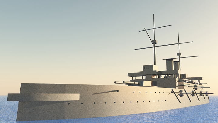 | 副砲は両弦側船体側面に40口径15.2cm砲を7門づつ計14門配備しています、この40口径15.2cm砲は最大射程9140mで毎分最大7発の速射が可能です、また対駆逐艦用に40口径7.62cm砲を20門、対水雷艇用に40口径4.7cm砲を12門、船体側面と甲板部、船体構造物上に配備されています。 |