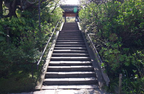 | 先程きた道に戻り北鎌倉駅に向かうと途中鎌倉五山第二位の円覚寺の石段が在ります、円覚寺は1282年(弘安5年)北条時宗が南宋の高僧無学祖元を開基として招いて元寇役の戦没者供養の為に創建したと云われています、建長寺の大覚禅師、円覚寺の無学祖元の様に蒙古軍に責め滅ぼされた南宋からの帰化僧を鎌倉幕府は積極的に受け入れていました、円覚寺では文永の役、弘安の役で戦没した日本兵のみならず蒙古兵も供養されています、蒙古軍の大半は南宋、高麗の出身兵であった事から無学祖元は同胞の死と捉えたのでしょう、また無学祖元は弘安の役の一ヶ月前に蒙古軍の再来を予言していたとも云われています。 | ||||||||||||||||||||