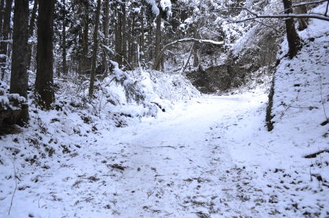 | 八王子側からの登り坂です、旧街道筋の峠道らしく掘割状のつづら折道と成っています、道幅は大変狭く場所によっては馬一頭がようやく通れる程の間隔です。 |