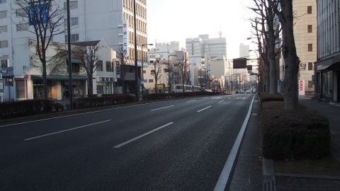| 材木町を進むとその先で街道筋は東方向へ屈曲していました、現在の国道119号線との交差路の裁判所前信号付近です、この曲がり角から先が新石町です。 | ||||||||||||||||
