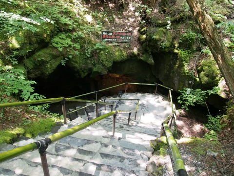 | 鳴沢氷穴の一番奥の地獄穴は落ちたら最後二度と上がってこれない竪穴で一説には江ノ島の洞窟に通じていると云われ実際のところこの穴の奥がどんな状態かはわっていません。 | ||||||||