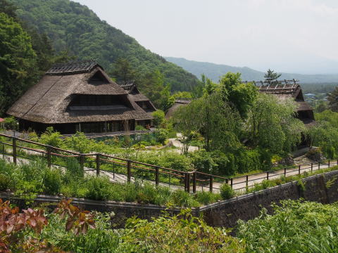 | 1966年(昭和40年)の台風により根場地区の集落は甚大な被害を受けて大半の家屋は消滅しました、その後40年の歳月をかけてこれら兜造りの家屋を再生したのが「西湖いやしの里根場」です。 | ||||||||