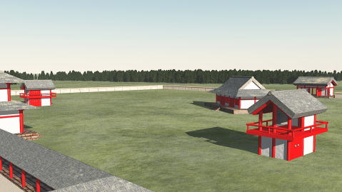 | 上総国分寺の寺域外周は築地塀で囲まれその四方には南大門をはじめ各門が開かれていました、またその塀の北の外側にも建造物の跡が数箇所確認されています。 |